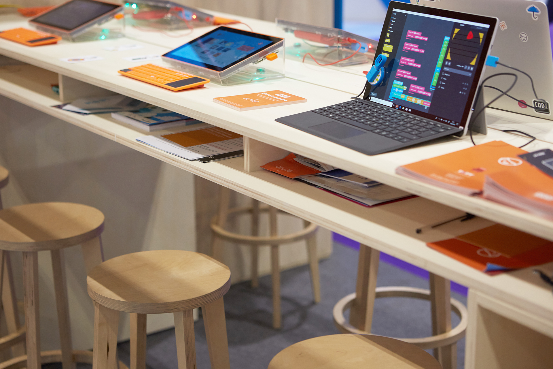Design of a booth for Kano Computing at the British Educational Toy Trade fair (BETT). Through our use of poplar plywood and pine timber, we hoped the stand would offer a counterpoint with a domestic feel, to the majority of other stands using vinyl, printed panels and cheap timber frames.