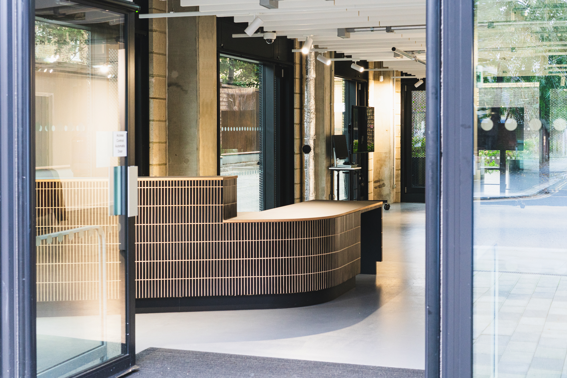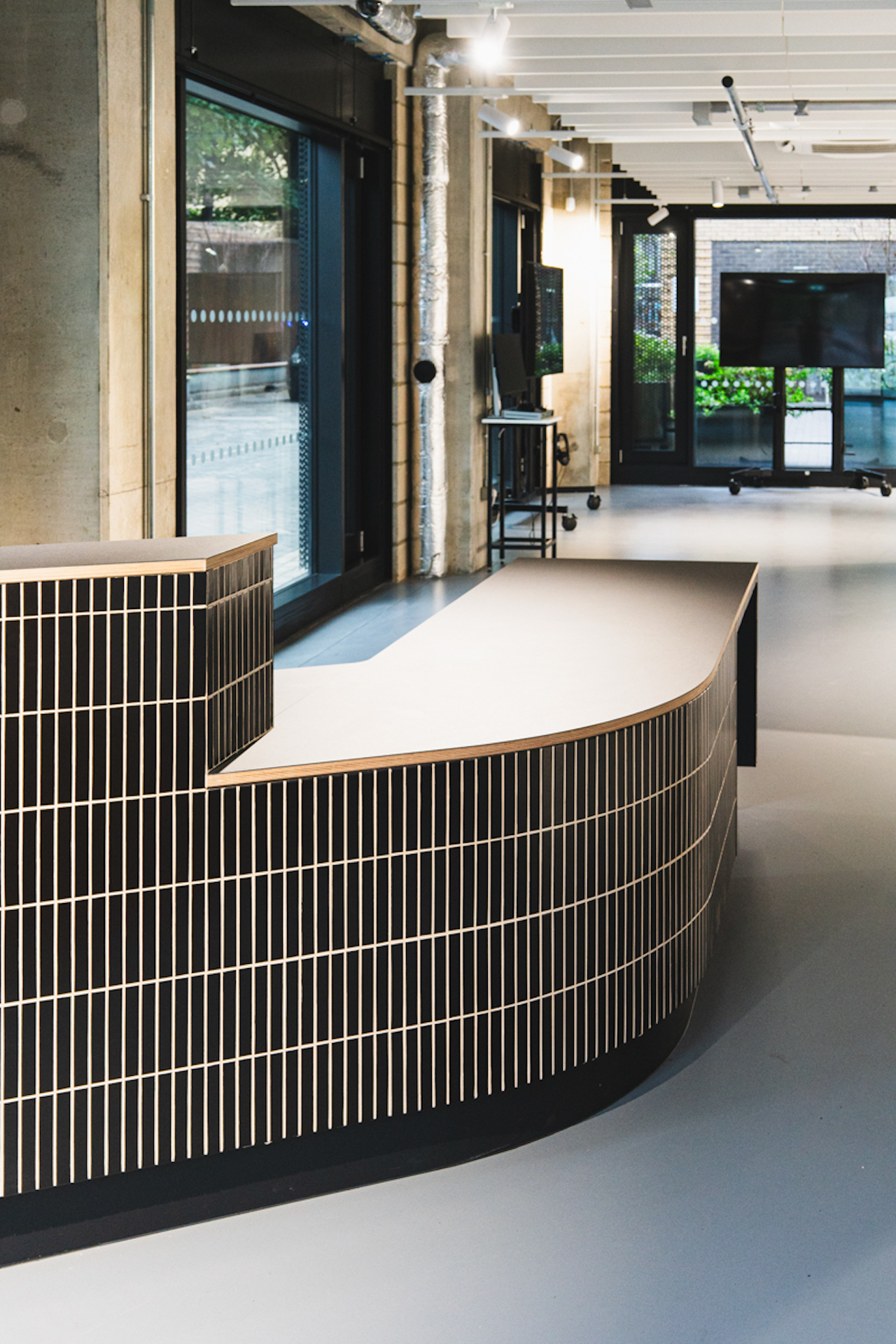 We have been commissioned to design a front of house reception desk for UAL’s new building The Hub (UAL). The slant to this desk naturally welcomes, guilding visitors into gallery space.